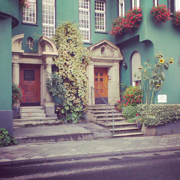 Bepflanzte Hauseingänge auf der Parkstraße, Gladbach