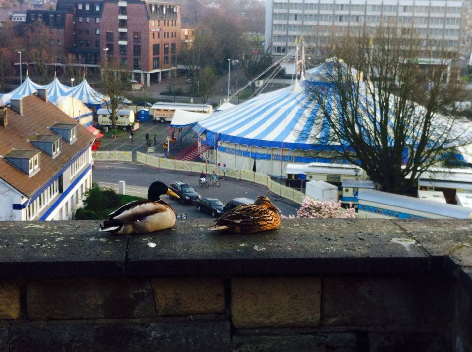 Entenzuschauer beim Roncalli-Circus am Geroweiherparkplatz