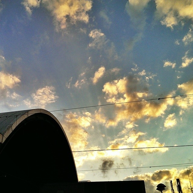 Lichtspiel mit goldenen Wolken am Hbf Mönchengladbach