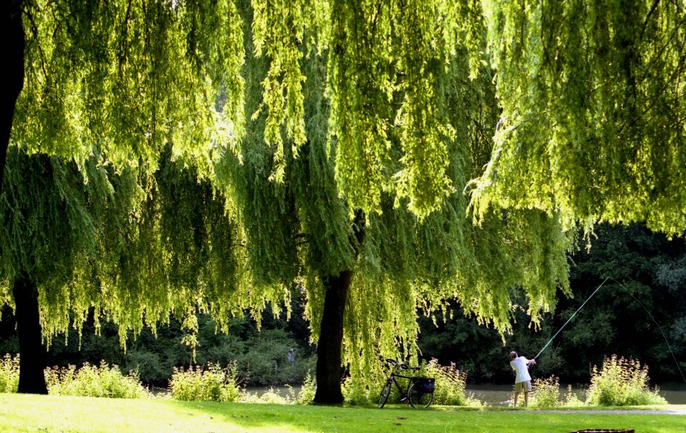 Angler unter dichtem Blätterdach in Mülfort, Rheydt