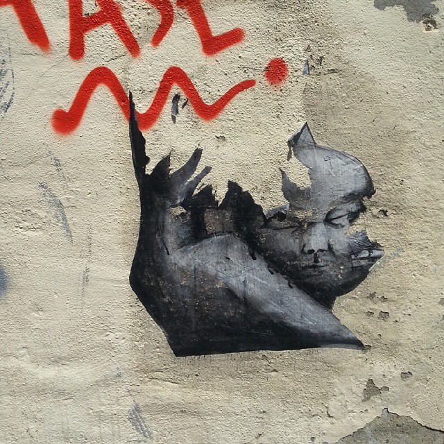 Zerissenes Stickerbild auf der Gasthausstraße, Gladbach