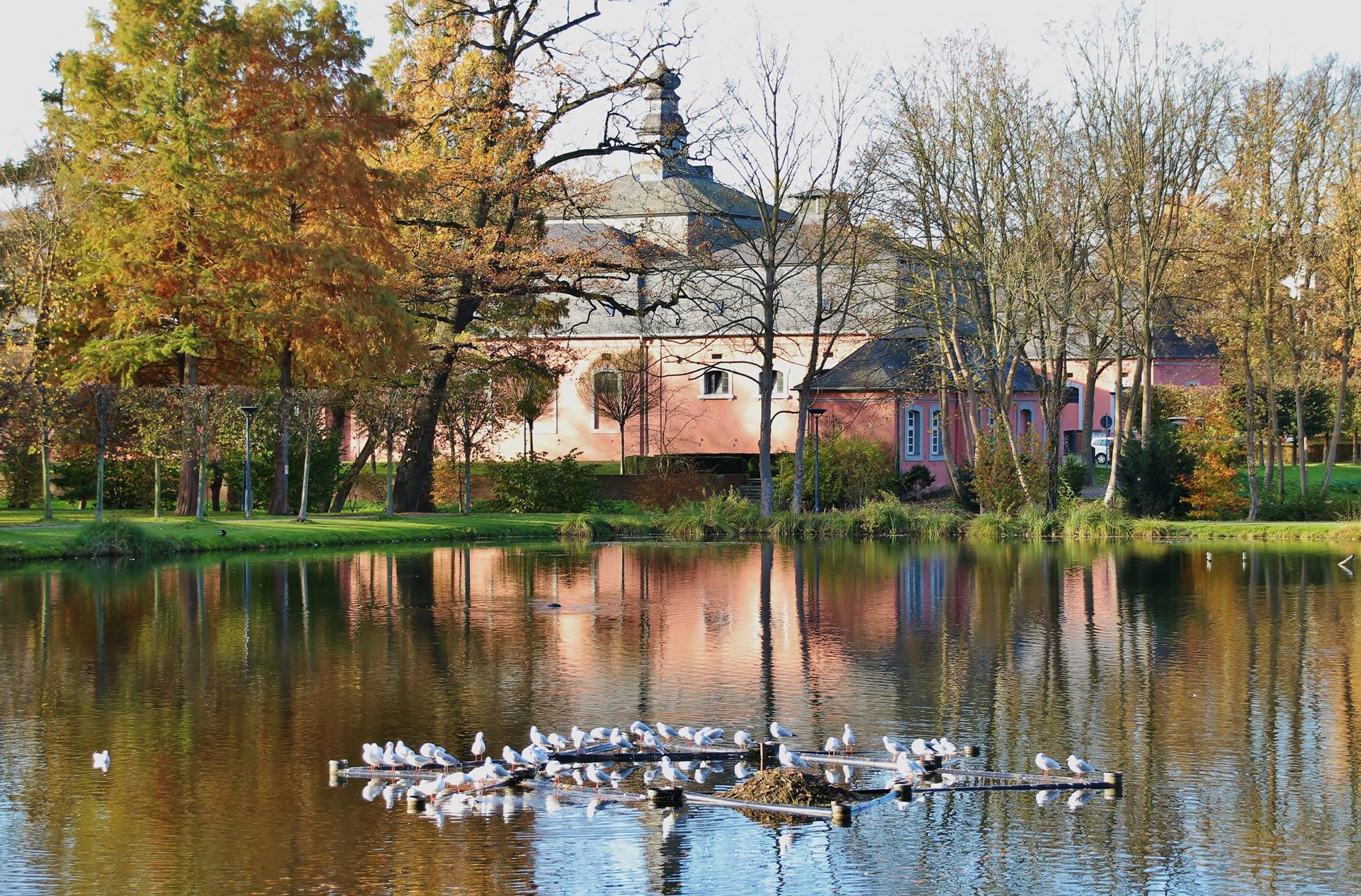 Möwen machen es sich im Schlosspark bequem, Wickrath