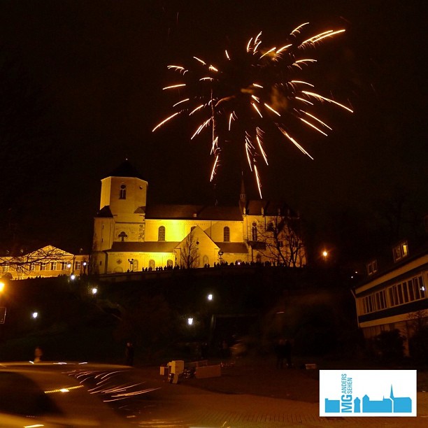 Silvesterraketen am Münster, gesehen vom Geroweiher aus