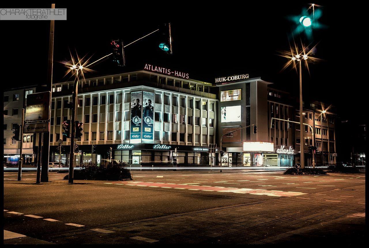 Atlantis Haus nachts, Limitenstraße in Rheydt