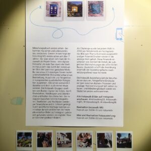 Als Challenge wurde bei jedem Walk in 2018 pro TeilnehmerIn ein hochgeladenes Bild zum Thema Kontraste ausgewählt und per Polaroid-Drucker wieder in die analoge Welt geholt. Und diese Polaroids – zwinkernde Details subjektiver Wahrnehmung im öffentlichen Raum – könnt ihr euch ab dem 19.01.19 im Köntges ansehen.