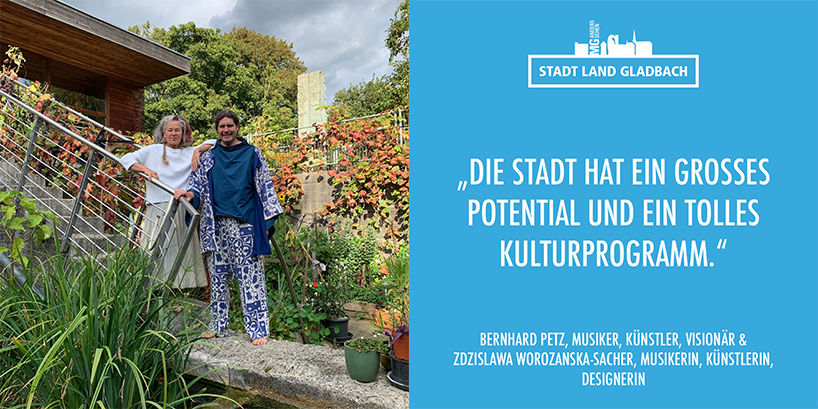 Allerdings mit der Verpflichtung, Wohnraum zu schaffen. Also bauten wir ein Haus aus Glas und Holz, fertig war es 2014. Der Bunker wurde 1944 gebaut, weil Baumaterial fehlte, konnte das abschließende Dach auf der dritten Etage nie gebaut werden. Deshalb können wir die Fläche auf der zweiten Etage und die dicken Außenmauern als Garten nutzen. Wir ziehen unser eigenes Obst und Gemüse. Das Regenwasser, das in den Bunker läuft, wird aufgefangen und hochgepumpt, damit wässern wir die Pflanzen. Im Bunker gibt es zwölf kleine und vier große Ausstellungsräume. Aus zwei übereinanderliegenden Räumen habe ich einen fünf Meter hohen Konzertraum geschaffen, indem ich die Zwischendecke herausgeschlagen habe. Hier findet die Veranstaltungsreihe ,Die Herbstzeitlose‘ statt – mit toller Akustik und in einer ganz besonderen Atmosphäre. Früher haben wir mitten in Rheydt gewohnt. Erst seitdem wir in unserem Bunker leben, fühlen wir uns als Gladbacher. Die Stadt ist eher ländlich geprägt, hat aber ein großes Potential und ein tolles Kulturprogramm.“
