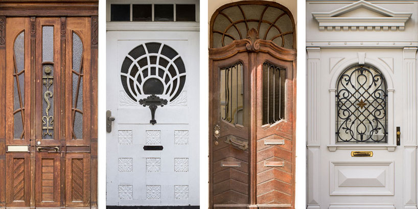Gesimsen, Säulen und Fensterbedachungen, zusammen. Thomas Volbach zeigt mit seiner Installation die Unterschiede und Einzigartigkeiten der Haustüren des Gründerzeitviertels auf, die im Gesamtbild ihres jeweiligen Gebäudes zumeist in den Hintergrund treten. Dabei spiegeln auch sie durch ihre Beschläge, Schnitzereien und verwendeten Materialien die vielfältigen Stilrichtungen der Gründerzeit wider.